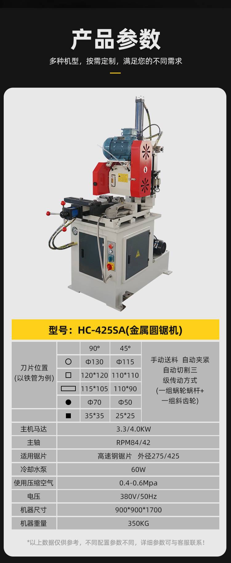425NC半自动切管机 圆管切割水锯机 供应伺服送料切割机